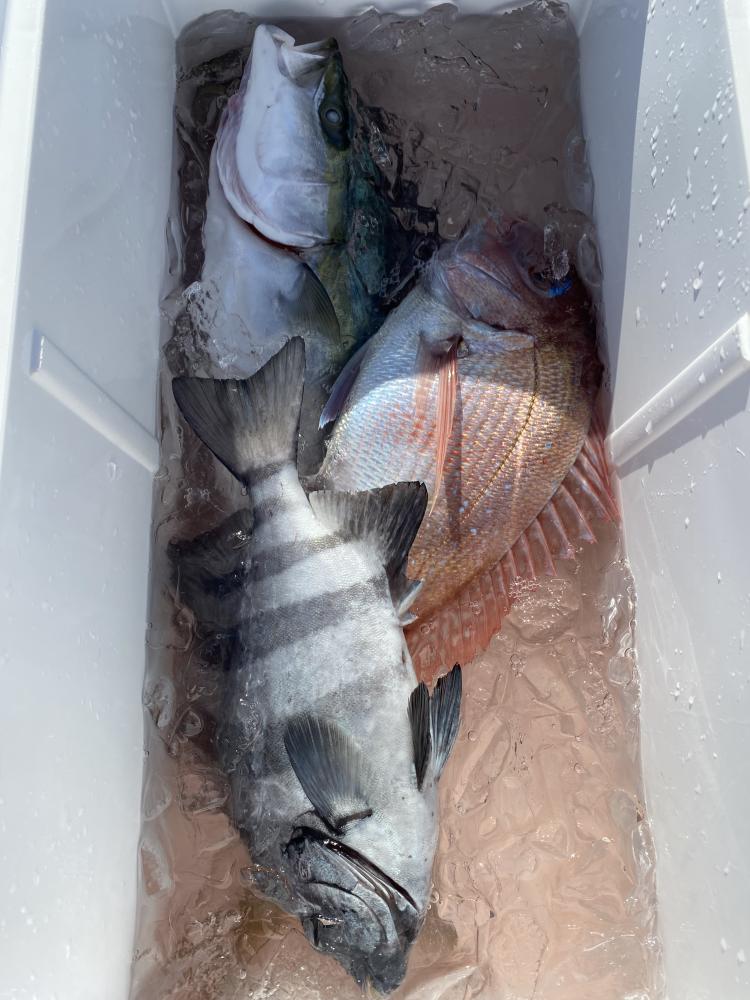 イナダ、ジャンボイサキが釣れて五目釣り達成できました!